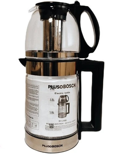 چای ساز بوش مدل 9030 کتری استیل ۱.۸ لیتر قوری شیشهای ۱ لیتر